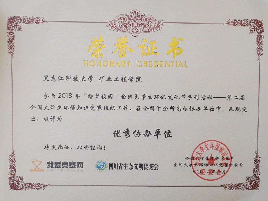 3003新葡官方网站荣获第二届全国大学生环保知识竞赛“优秀协办单位”