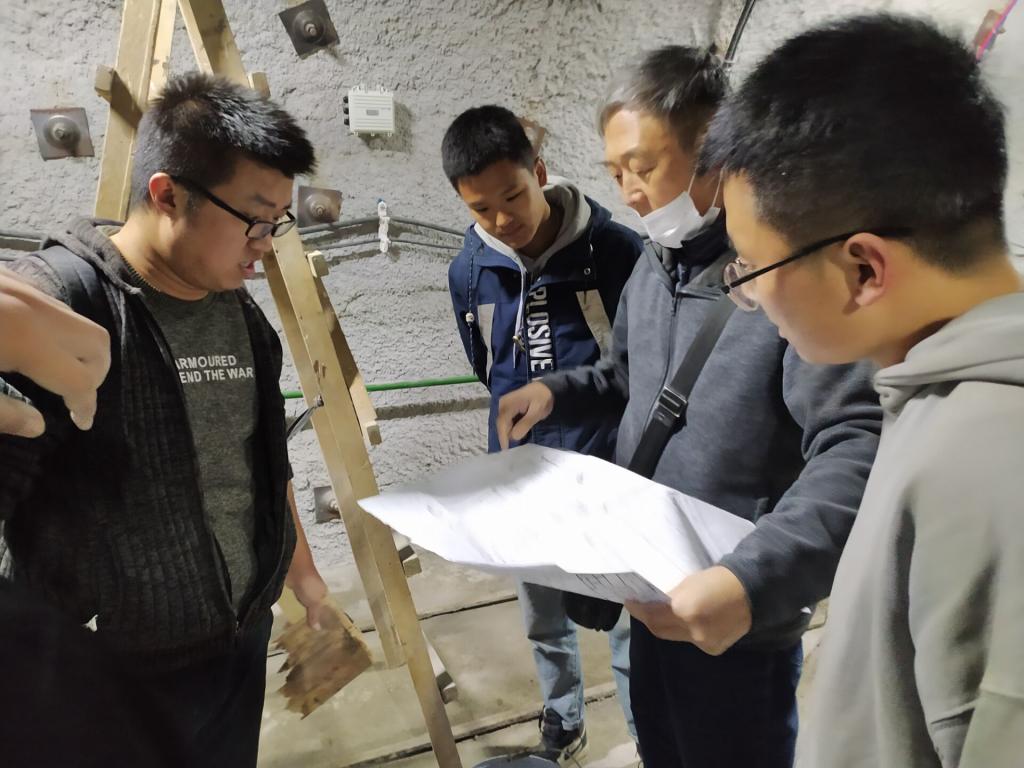 我校是矿业特色鲜明的、以高水平应用型人才培养为目标的高校,作为矿区生产必不可少的测绘,长期以来受实践条件的限制,井下测绘实践课程开展困难。为解决这一难题,矿业工程学院在模拟矿井的建设中,添加了井下测绘实践场地建设。10月18—20日,测绘工程学科带头人赵喜江教授带领孙江、马福义、张在岩、赵威成、王俊杰等教师,发扬科大测量人特别能吃苦、特别能战斗的精神,不畏严寒连续奋战三天,完成了模拟矿井地面和井下的全部控制测量工作,测绘成果符合《煤矿测量规程》的技术要求。此项工作满足了测绘工程、采矿工程、资源勘查工程等相关专业矿山测绘实践需求,解决了学生实践难的大问题。