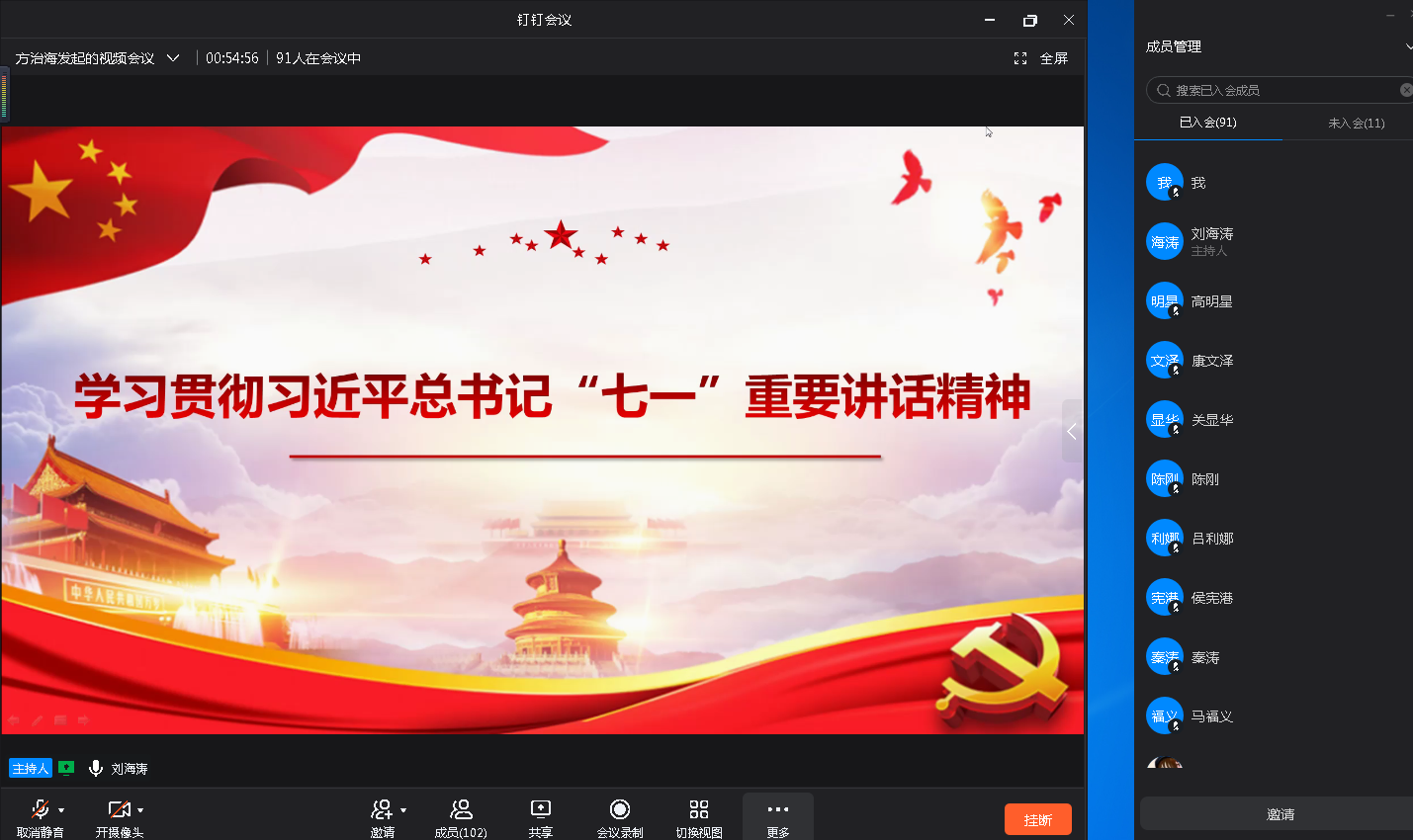 9月15日下午,3003新葡官方网站通过钉钉视频会议平台线上召开全体教职工大会,传达学习上级文件精神并部署工作。学院领导班子、全体教职工参加会议,会议由学院党委书记刘海涛主持。