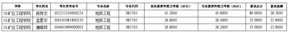 3003新葡官方网站2025年硕士研究生招生考试(资源与环境-地质工程)第一次调剂待录取名单