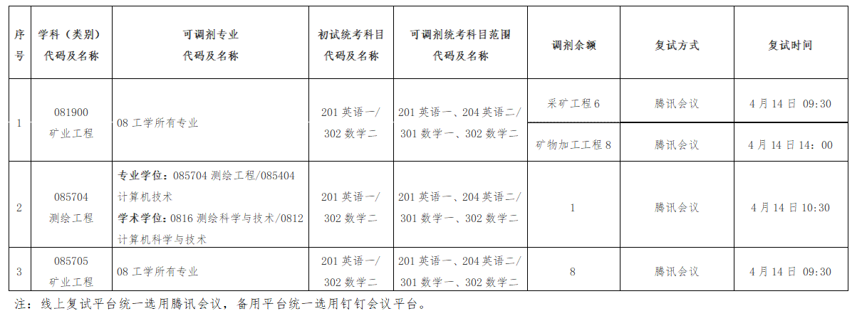 3003新葡官方网站2025年硕士研究生考试(矿业工程、资源与环境-矿业工程)第二次调剂及(资源与环境-测绘工程)第三次调剂公告