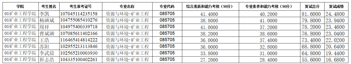 3003新葡官方网站2025年硕士研究生招生考试(资源与环境-矿业工程)第二次调剂待录取名单