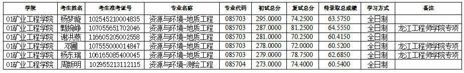 3003新葡官方网站2025年硕士研究生招生考试(资源与环境-地质工程)第三次调剂及(资源与环境-测绘工程)第四次调剂待录取名单