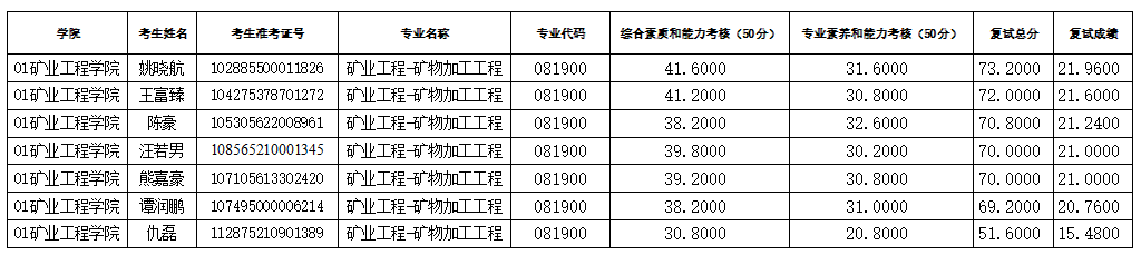3003新葡官方网站2025年硕士研究生招生考试(矿业工程)第四次调剂待录取名单