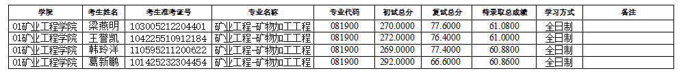 3003新葡官方网站2025年硕士研究生招生考试(矿业工程)第五次调剂待录取名单
